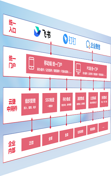对协作平台提供支持服务,,,,支持企业应用与协作平台对接,,,包含组织同步、、、、消息集成、、待办集成等。。支持目前主流的协作平台:钉钉、、、、企微和飞书。。。。